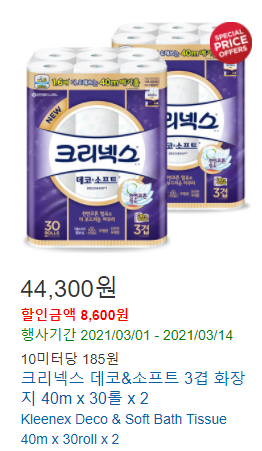 51) 크리넥스 데코&소프트 3겹 화장지 40m x 30롤 x 2
