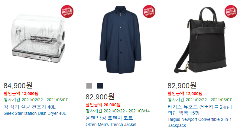 1. 2월18일~ 3월7일까지 할인상품