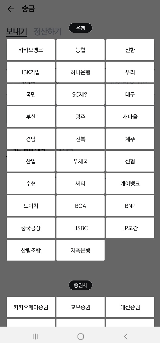 (5) 친구 옆에 있는 계좌번호를 눌러주세요. 아래와 같이 은행을 선택하는 화면이 뜹니다.