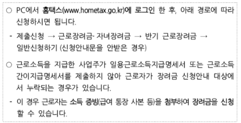 ​※ 3월15일까지 신청하지 못한 가구는 21년 5월 근로장려금정기신청기간(5월1일~31일까지)에 신청 가능