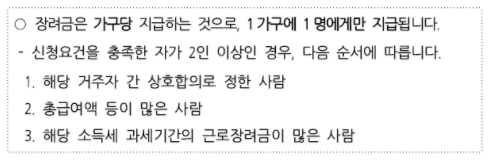 - 근로장려금은 1가구 당 1명만 신청 가능합니다.