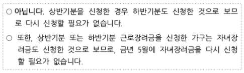 3) 작년 9월에 2020년 상반기분 근로장려금을 신청했는데 이번 하반기분 신청대상인가요?