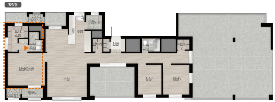 84㎡E (펜트하우스) : 3가구 / 84㎡F(펜트하우스) : 1가구로 구성