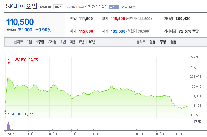 - 20년 10월 상장, 상장 첫날이 최고가