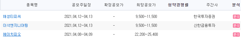 공모주 일정 3월 4월 엔시스 아모센스 에이치피오 이삭엔지니어링 해성티피씨