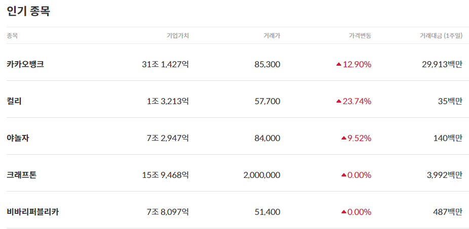 2019년부터 서비스를 시작한 곳으로 이곳에 등록된 비상장기업은 약 150여개이고, 인기종목 20여개가 전체 거래의 90%이상을 차지하고 있다고 합니다. 인기종목은 어마어마한 대어들입니다. 카카오뱅크, 마켓컬리, 야놀자, 크래프톤 등등...