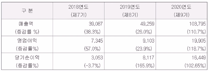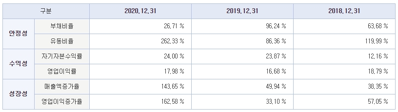 <최근 3개년 주요 재무성장성 지표> (단위: 백만 원)