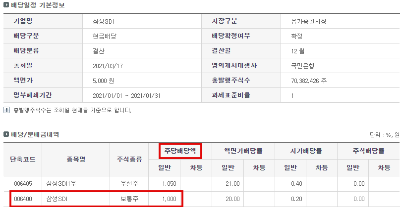 - 21년 4월16일에 입금되는 배당금은 1주당 1,000원입니다.