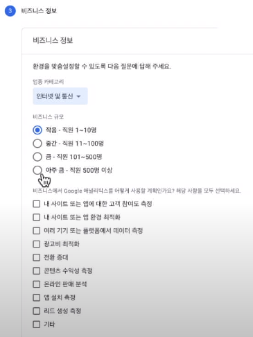8. 3번 비즈니스 정보는 크게 중요하지 않으니 대충 입력하시거나 선택해주시면 됩니다.