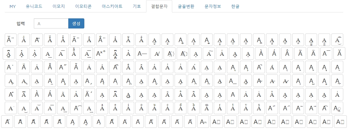 ■ 결합문자도 있고요. 또 재미있는 건 문자를 자신이 만들 수도 있는 것같아요. 예쁜 결합문자, 특수문자 등에 도전해보세요. 자신만의 문자 모음집도 만들어서 유용하게 쓰시면 좋겠네요. 만드신 분 존경합니다.