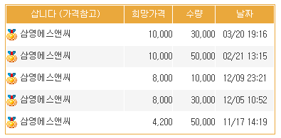 - 장외가 (장외거래 시세 참고용)