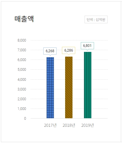 - 2019년 매출: 6조8011억 원, 영업이익: 4081억 원