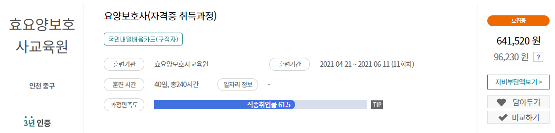 요양보호사내일배움카드 은퇴 준비 중년 자격증 일자리 찾기