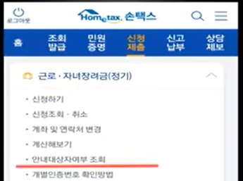 2) 모바일 안내대상여부 확인 & 신청(손택스) :