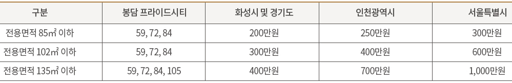 1) 거주지: 화성 및 경기도 / 서울 / 인천 거주가 1순위 청약 가능