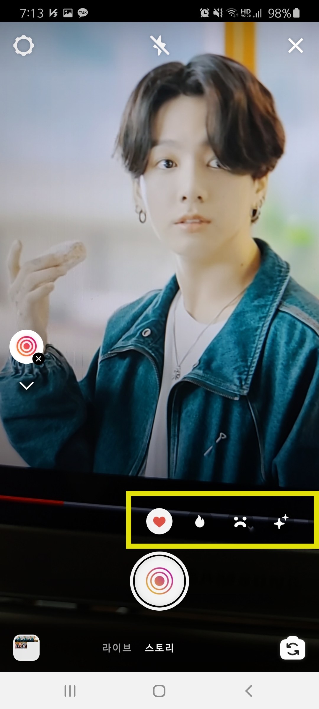 4. 하트를 선택하고 아래 카메라 버튼을 누르면 요렇게 하트가 둥둥 떠다니면서 예쁜 bgm이 흘러나옵니다.