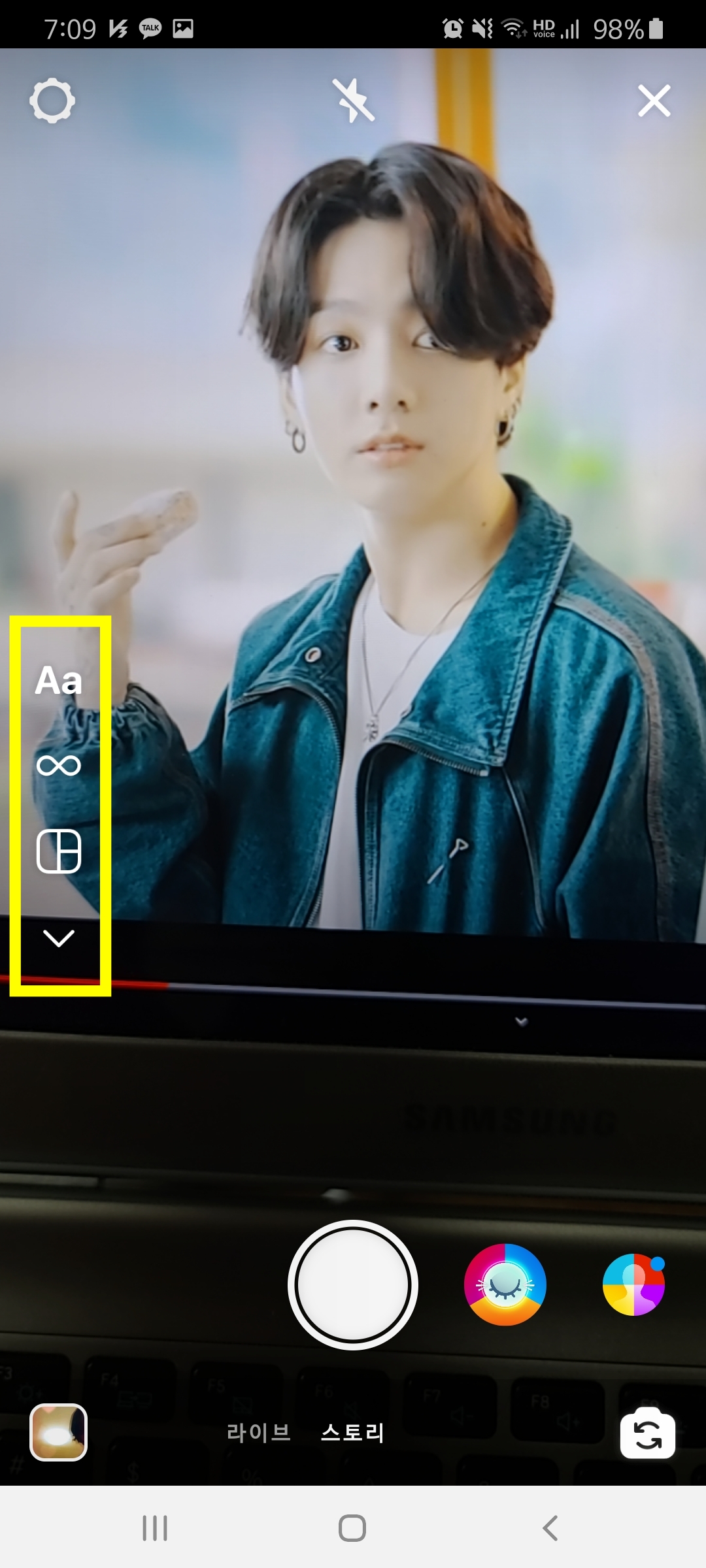 1. 화면에서 좌측 노란 박스 안의 화살표▽를 클릭 (제 폰 기종은 갤럭시 S20Ultra입니다)