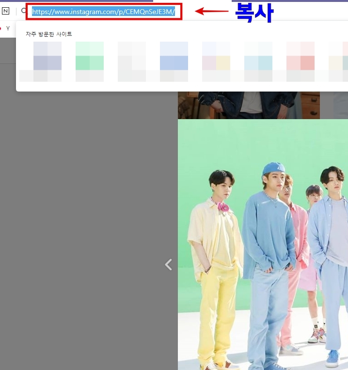 2. (PC버전) 방탄소년단의 사진을 다운 받아보겠습니다. 2가지 방법이 있습니다.