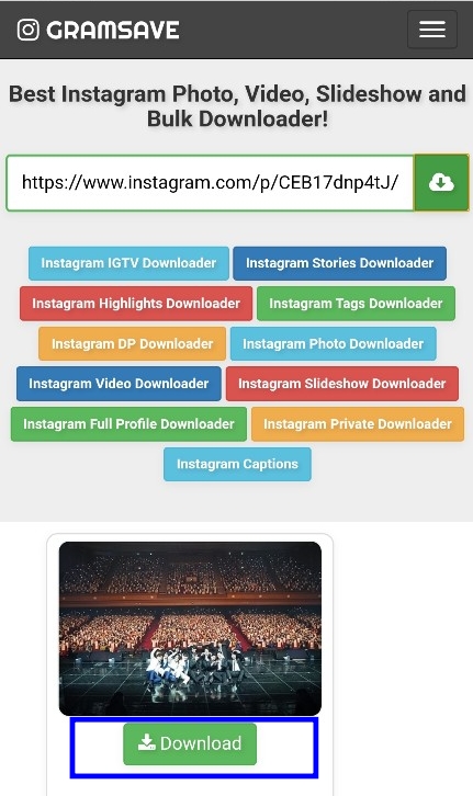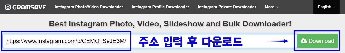 1. 파란색 박스 안에 인스타 URL입력하고 다운로드 누르면 됩니다.