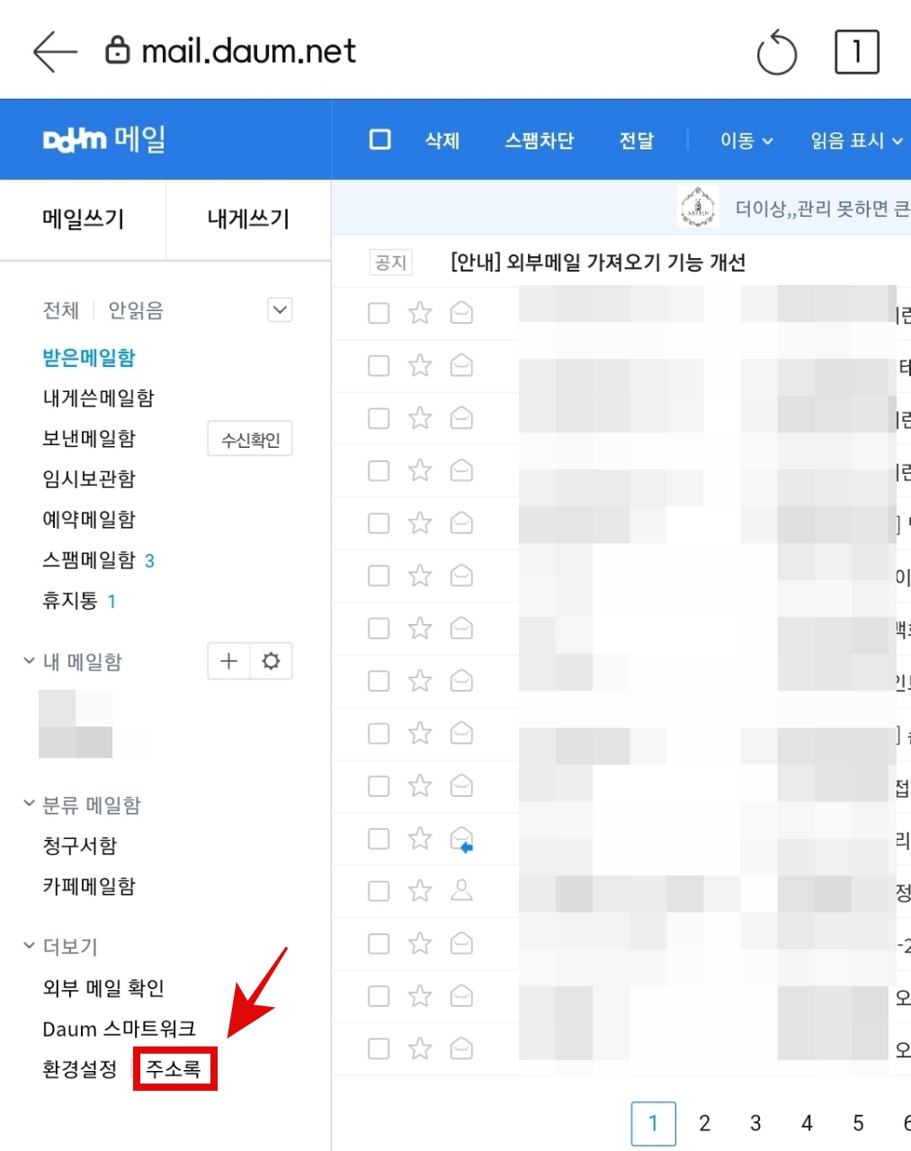 2) 본인계정사칭 스팸메일을 차단하려면 자신의 다음메일 계정이 주소록이나 수신허용 목록에 추가되어 있으면 안 됩니다. 만약 본인계정이라 차단이 안 된다는 메시지가 뜬다면, 주소록이나 수신허용 목록에서 자신의 계정을 삭제해주세요.
