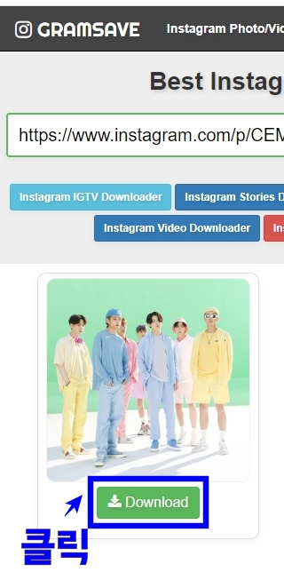 4. 그럼 바로 썸네일 사진과 다운로드 버튼이 생깁니다. 다운로드 버튼을 클릭