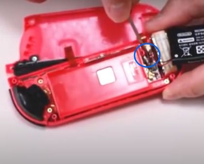 배터리를 받치고 있던 케이스를 제거해주세요. Z버튼이 기판과 연결되어있어 완전히 분리는 안 됩니다.