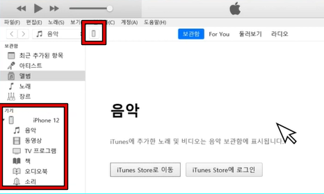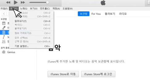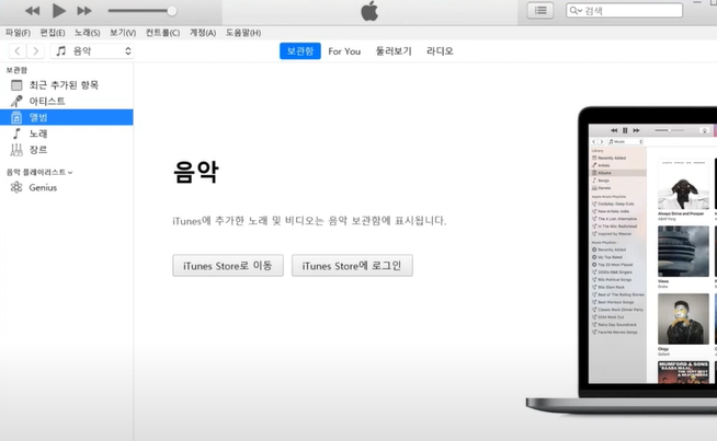 6) 아이튠즈가 제대로 실행되었다면 아래와 같은 화면이 표시될 거예요.