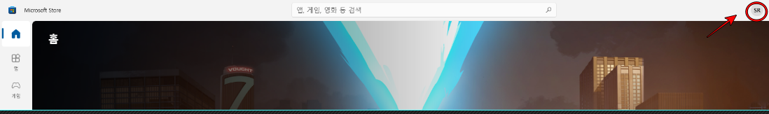 2) 위의 Microdoft Store를 클릭하면 아래와 같이 앱이 실행됩니다. 우측 상단 조그맣게 프로필 아이콘이 확인되는데, 마이크로소프트 계정으로 로그인이 되어 있어야 아이폰의 아이튠즈를 검색해서 다운로드 받을 수 있습니다. 만약 마이크로소프트 계정이 없다면 무료 계정을 만드시기 바랍니다.