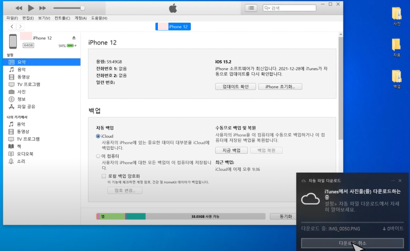 11) 아이폰과 컴퓨터를 연결하면 아이폰에는 이 컴퓨터를 신뢰하겠습니까? 라는 문구가 뜨고, PC에는 아이폰에 있는 정보에 연결하는 것을 허용하겠냐는 문구가 뜹니다.