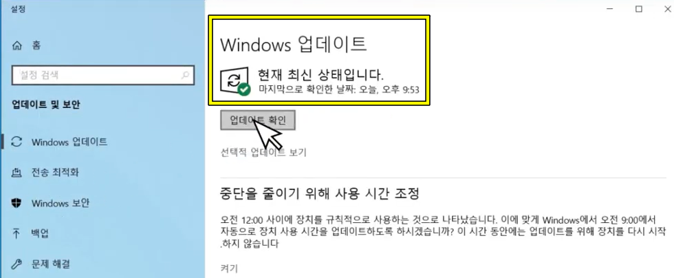 * 업데이트를 검색했을 때 현재 최신 상태입니다 라고 표시되어 있다면 다음으로 넘어가 주세요.