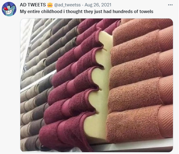 나는 어린 시절 내내 수건가게가 수백 장의 수건을 가지고 있는 줄 알았다...
