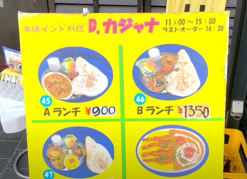 아래 메뉴는 런치메뉴 중 A세트 900엔입니다. 무엇보다 밥의 양이 엄청나죠? 카레는 여러 종류 중에서 선택할 수 있습니다. 추천 카레는 에그키마카레입니다.