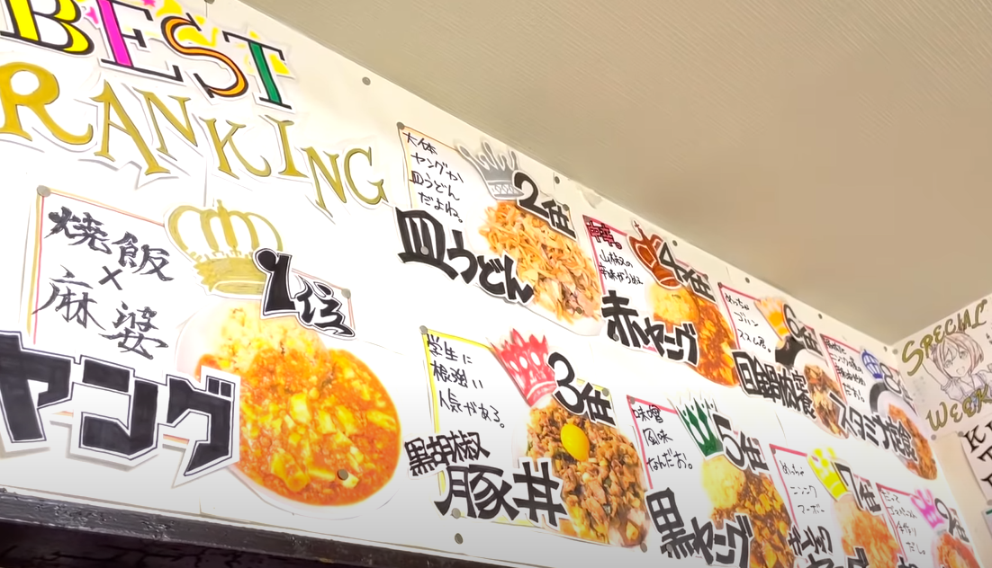 시미칸에서 가장 인기 있는 메뉴는 볶음밥과 마파두부(야키메시&마보)라고 합니다. 2등은 볶음우동이고요.