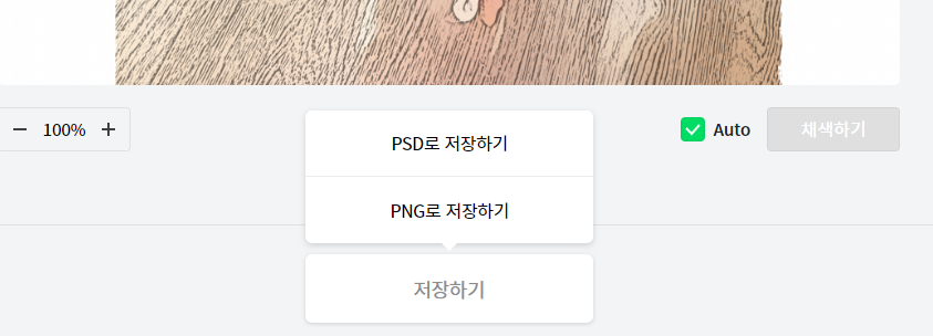 그럼 이제 저장을 해보겠습니다. 하단의 저장하기를 누르면 PSD 혹은 PNG 중 선택하게 되어 있는데, 이걸 완성작품으로 저장하고 싶으면 PNG로 포토샵 등에서 수정하고 싶으면 PDS로 저장해주세요. 전편과 같이 PSD로 먼저 저장하고 PNG로 다시 저장하는 것도 좋겠죠.