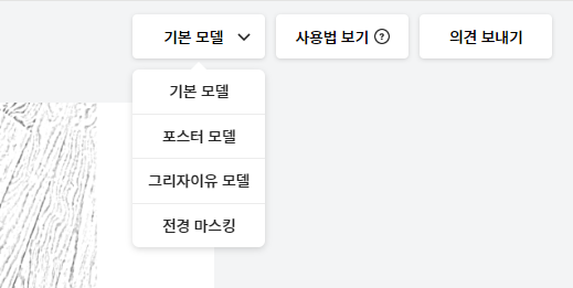 우측 상단에 <기본 모델> 드롭박스를 클릭하면 아래와 같이 여러 모델이 나오는데, 이걸 선택하면 점을 찍을 필요도 없이 자동 채색이 됩니다. 하나씩 해보겠습니다.