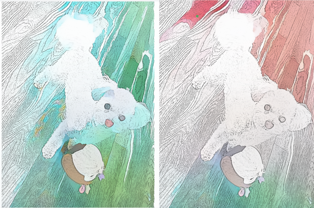 위의 사진을 비교해보면 좌측보다 우측이 더 자연스러워진 것같습니다. 이런 식으로 원하는 색으로 부분부분 점을 찍으면 이렇게 전체적으로 조금씩 변화해갑니다. 너무 신기하지 않나요? ㅎㅎ