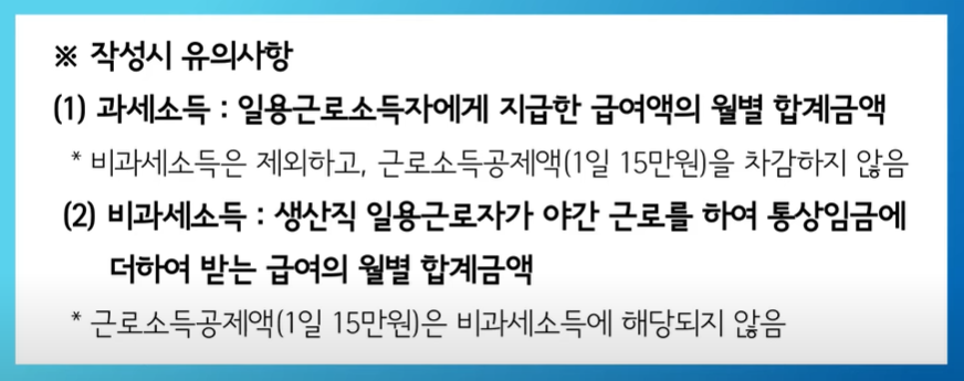 ※ 비과세소득은 생산직 일용근로자에게 지급한 야간 근로수당 등 비과세 소득에 해당하는 경우 입력합니다.