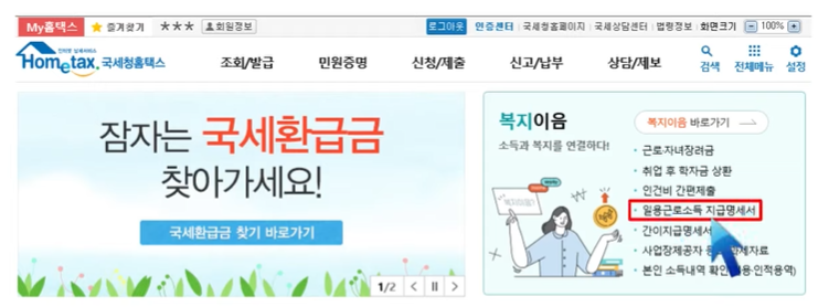 ▶ 먼저 국세청홈택스에 접속해주세요.