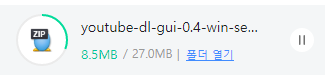 다운로드가 완료되면 ... 점 3개 버튼(저장 폴더 열기)를 눌러 다운로드 영상을 찾아 실행하시면 됩니다.