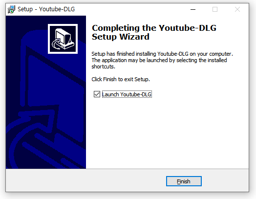 (3) YouTube-DLG 실행이 체크되어 있는 상태에서 Finish 클릭