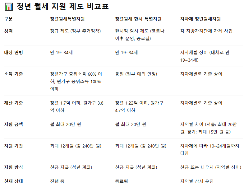 즉, 내용 자체는 비슷하지만 “한시특별지원”은 끝났고, 지금은 “청년월세특별지원”이 정식으로 이어지고 있다고 이해하시면 됩니다.