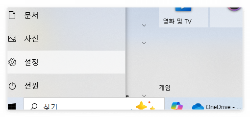 1) 컴퓨터 윈도우버튼 > 설정  (WIN+I)