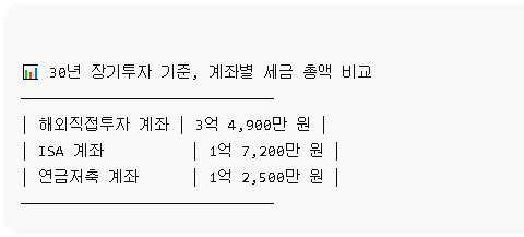 세금 구조의 차이가 복리효과를 누적시키며 수천만 원의 격차를 만든다는 점입니다.
