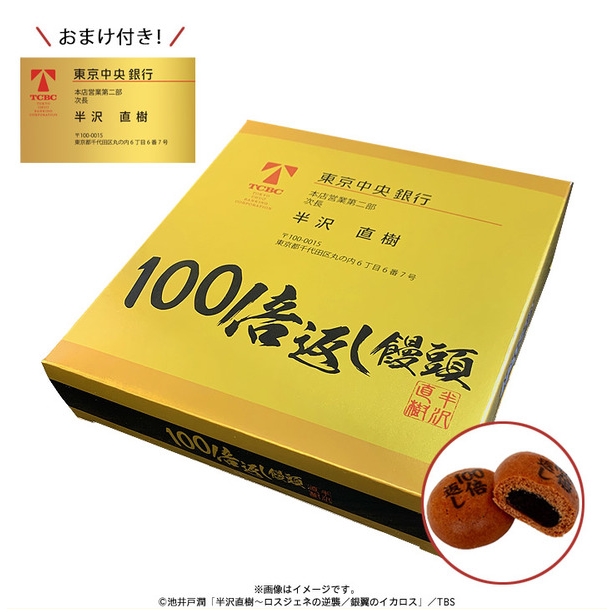한자와나오키의 배로 갚아주마! 라는 유명한 대사가 있죠? 그런데 "100배로 갚는 만쥬"라는 팥이 들어있는 만쥬를 판매하는 모양이네요. 도쿄중앙은행 한자와나오키 명함도 들어있어요. ㅋㅋㅋㅋ 갖고 싶다!