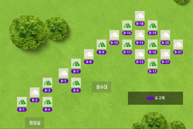 - B구역 일반사이트 (테이블, 화덕 있음) 10,000원 1박2일 기준
