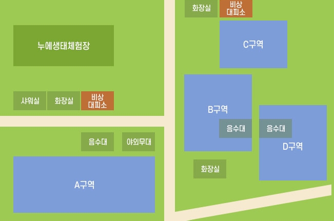 한여름에 가시는 분들은 잔디밭에 캠핑장이 있어서 그늘막이 없으면 뙤약볕 속에서 텐트를 쳐야 합니다. 나무가 없어요. 나무가 있는 곳은 뱀이 나온다고 하니 관리사무실에서 백반 챙기시는 것도 잊지 마시기를요. 화장실과 개수대가 각 구역마다 있습니다. 매점, 카페 등이 있으니 짐이 부담되는 분들은 매점에서 해결하는 것도 방법입니다. 하지만 가격이 비싼 건 안 비밀입니다.