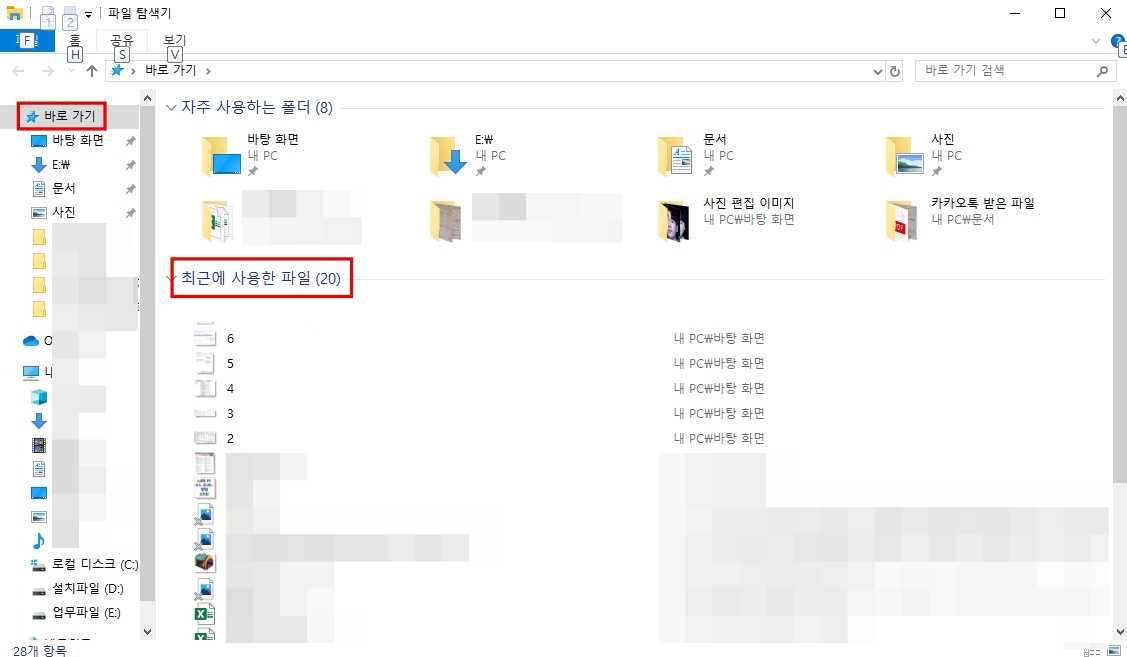 이렇게 하고 윈도우탐색기를 열어보세요. 최근 사용한 파일과 폴더가 사라진 것을 확인하실 수 있을 겁니다.